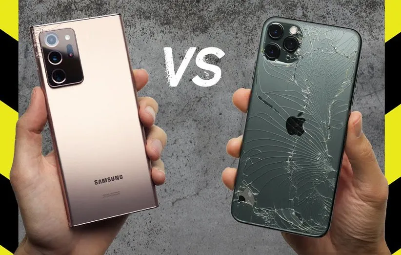 مقایسه تست سقوط گلکسی نوت ۲۰ اولترا با آیفون ۱۱ پرو مکس