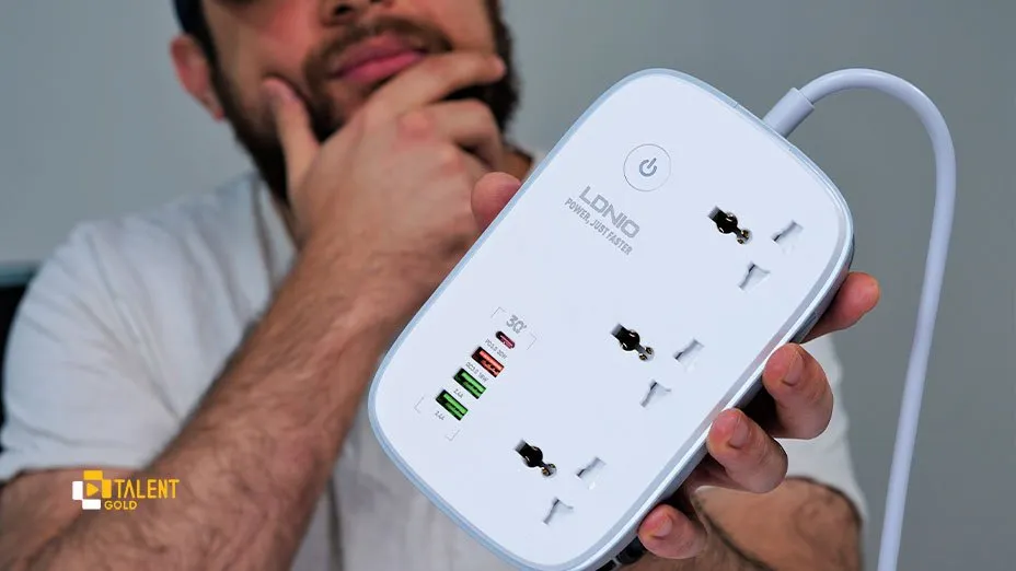 در بدنهی این چندراهی برق شاهد سه پورت USB-A و یک پورت USB-C هستیم. پورت USB-C از فناوری شارژ PD پشتیبانی میکند و میتواند خروجی 30 وات را در اختیار شما قرار دهد. یکی از پورتهای USB-A انرژی 18 وات ارائه میدهد و دو پورت دیگر از حداکثر جریان 2.4 آمپر پشتیبانی میکنند. درون این محصول یک سنسور هوشمند قرار دارد که در صورت گرم شدن بیش از حد، به طور خودکار جریان برق را قطع میکند.