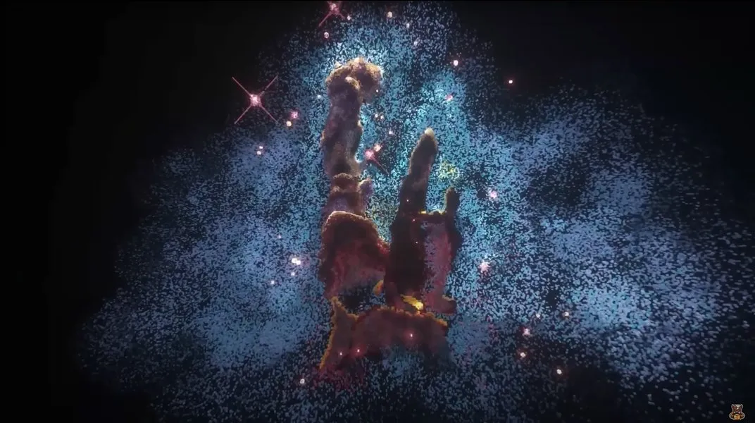 اسلایتون در دنیای مدل خود، یک سیاهچاله را هم با الهام از فیلم میانستارهای محصول سال 2014 بازسازی کرد و ستونهای گاز و غبار در سحابی عقاب را که به «ستونهای آفرینش» (Pillars of Creation) معروف هستند، ساخت. در نهایت هم او ساختاری کروی و شبکه-مانندی ساخت که نمایانگر کل کیهان بود.