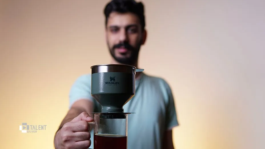 در این سری از ویدیوهای تلنت قصد داریم قهوهساز استنلی مدل V60 را به شما معرفی کنیم. این محصول یک قهوهساز باکیفیت از برند آمریکایی است. بینیاز بودن این دستگاه به هرگونه فیلتر کاغذی میتواند بسیار کاربردی باشد و شما میتوانید از آن در کمپینگ هم استفاده کنید. جنس مخزن این قهوهساز استیل و بدنهی آن هم استیل ضدزنگ است. وزن این محصول ۳۰۰ گرم بوده و گنجایش آن ۰.۵۹ لیتر است.