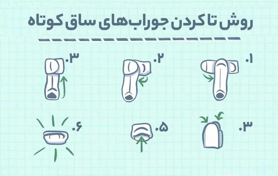 به جای اینکه جورابها را در هم فرو کنید و یک گلولهی جاگیر داشته باشید بهتر است از این روش استفاده کنید تا فضای کمی اشغال کند.