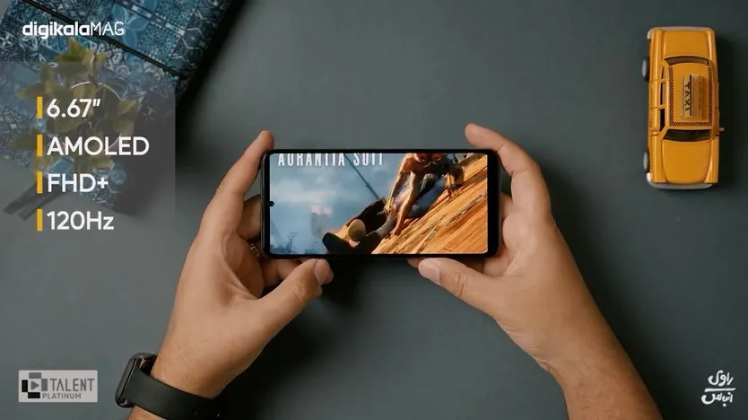 بدون شک یکی از نقاط قوت اصلی این گوشی، نمایشگر آن است که 6.67 اینچ اندازه دارد و مبتنی بر پنل AMOLED است. رزولوشن این نمایشگر FHD+ است و رفرشریت آن به 120 هرتز میرسد. روشنایی نمایشگر تا حداکثر 1200 نیت افزایش پیدا میکند و در نتیجه در محیطهای خارجی هم میتوانید از آن استفاده کنید. در کل این نمایشگر میتواند انواع محتوا را به بهترین شکل نشان دهد.