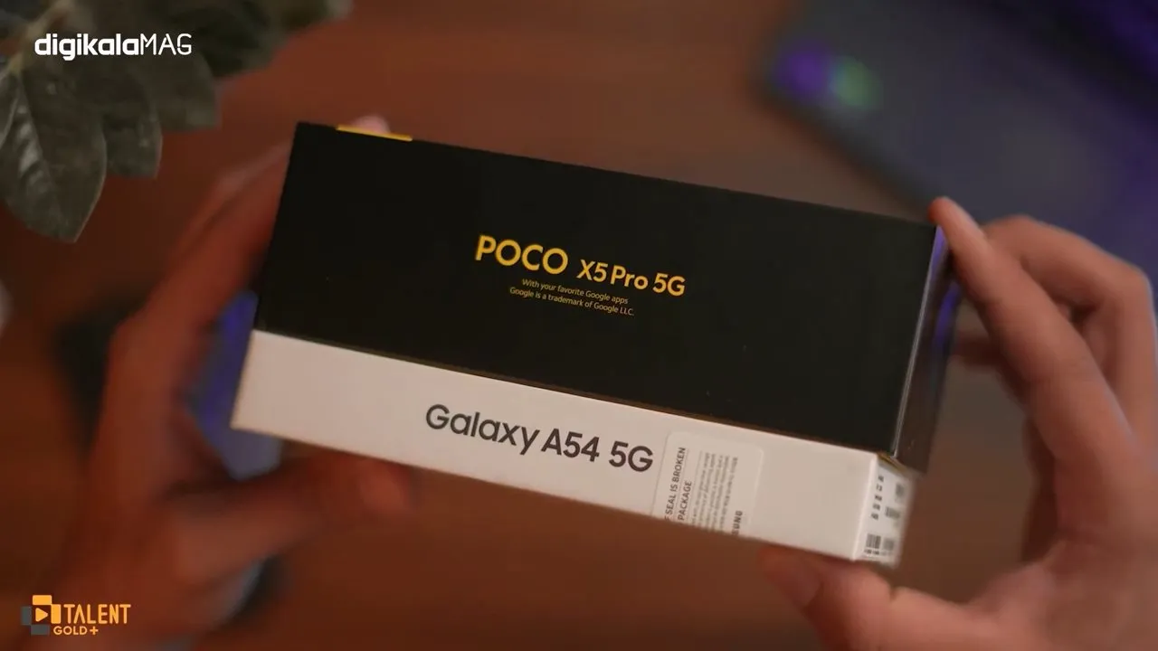بستهبندی گلکسی A54 در برابر پوکو X5 پرو