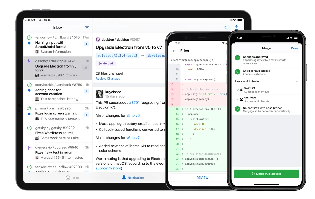 اپلیکیشن گیت هاب برای اندروید و iOS یک ابزار مدیریتی قدرتمند است که به شما اجازه میدهد پروژههای خود را در هر زمان و مکانی مدیریت کنید. این اپلیکیشن برای کدنویسی طراحی نشده، بلکه برای نظارت بر روند کار و همکاری تیمی کاربرد دارد. با استفاده از آن میتوانید: