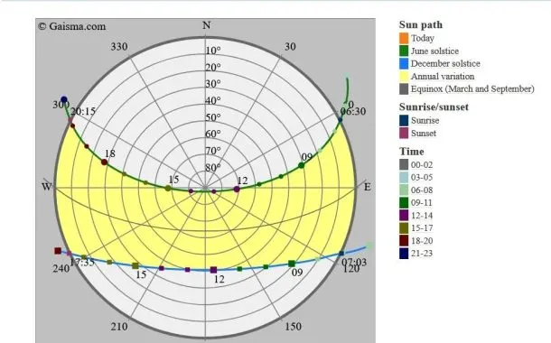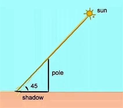با این حال دقیقا ساعت چند است؟ بیایید طول سایهها را در تریلر بررسی کنیم. آنها تقریباً معادل ارتفاع اجسامی هستند که سایهی مربوطه را ایجاد میکنند و بنابراین، نشان میدهند که زاویهی خورشید تقریبا 45 درجه است. این را میتوان با استفاده از چند فرمول مثلثاتی ساده ثابت کرد. در ادامه با نگاه کردن به نمودار مسیر خورشید برای میامی، میتوانیم تعیین کنیم که خورشید در چه زمانی 45 درجه بالاتر از افق خواهد بود.