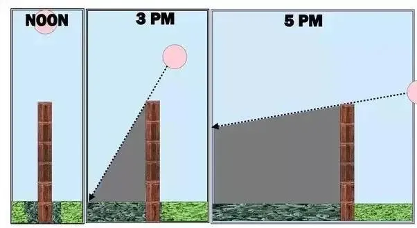 سایهها راه بسیار خوبی برای تعیین زمان روز هستند. همانطور که مشخص است، ما حتی نیازی به دانستن زمان غروب آفتاب نداریم. تمام اطلاعاتی که ما نیاز داریم در این شات مربوط به ساحل از تریلر وجود دارند. از آنجایی که NPCهای دیگر دارای سایههای طولانیتر هستند. این بدان معنی است که خورشید به افق نزدیکتر است. البته این به ما نمیگوید که آیا خورشید در حال طلوع یا غروب است. برای درک بهتر این گفته به تصویری که در ادامه آمده است، دقت کنید.