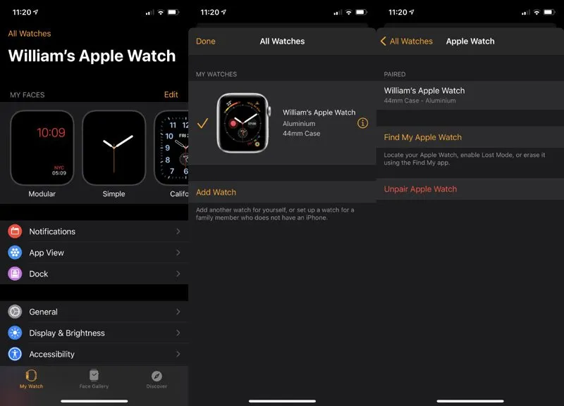 - اگر شما دارای اپل واچهای متعددی هستید، اپل واچ مورد نظر را از لیست پیدا کنید.