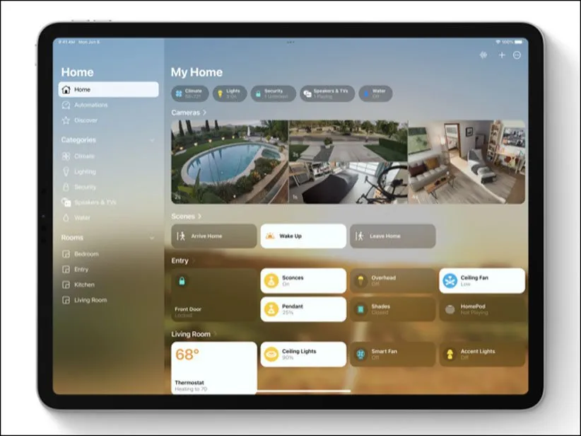 اپلیکیشن Home در iPadOS 16 به طور کامل بازطراحی شده و در کل تجربهی کاربری جذابتری را ارائه میکند. اول باید به تغییرات پشت صحنه اشاره کنیم که سرعت این اپلیکیشن را افزایش دادهاند. از نظر ظاهری هم حالا گجتهای هوشمند مانند تلویزیون و لامپهای هوشمند در بخشهای جداگانه قرار گرفتهاند. در کل کاربرانی که از چندین گجت هوشمند استفاده میکنند، احتمالا از این تغییرات استقبال خواهند کرد.
