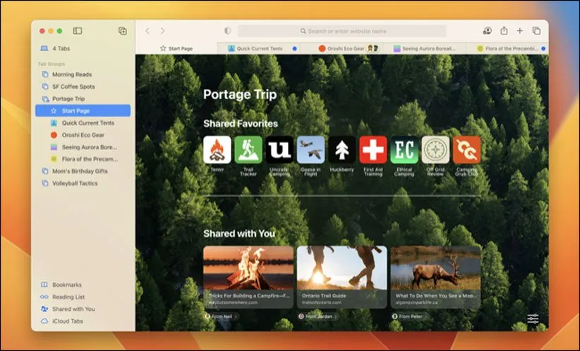 یکی از قابلیتهای جدید سافاری Shared Tab Groups نام دارد که با استفاده از آن میتوانید مجموعهای از لینکها را به راحتی با دوستان خود به اشتراک بگذارید. همچنین APIهای مربوط به افزونهها هم با تغییرات زیادی روبرو شده و توسعهدهندگان میتوانند از این امکانات جدید بهره ببرند.