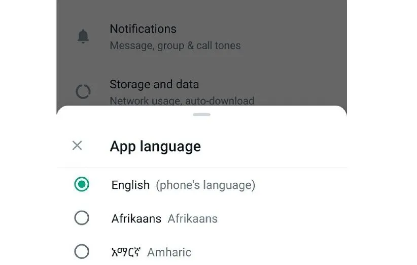 دیگر قابلیت جدیدی که بهتازگی در نسخهی بتای این پیامرسان دیده شد، قابلیت تغییر زبان درون برنامه است. کاربران با استفاده از این قابلیت جدید از این پس قادر خواهند بود تا زبان واتساپ خود را بدون توجه به زبان گوشیشان تغییر دهند. در همین راستا باید اشاره کنیم که کاربران نسخهی بتا میتوانند با انتخاب گزینه منوی دارای آیکون سه نقطه در گوشه راست بالایی و ورود به تنظیمات، گزینه جدید App language را مشاهده کنند.