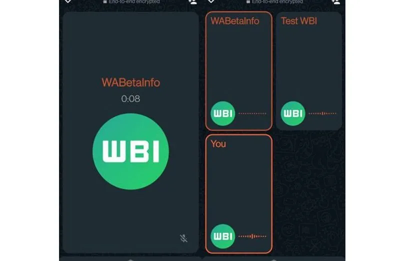 درست همانند تصاویری که چند ماه قبل دیدیم، یک مربع خاکستری با لبههای گرد در مرکز صفحه تماس صوتی دیده میشود و اطلاعاتی نظیر نام، شماره تماس، تصویر پروفایل مخاطب و همچنین مدت زمان مکالمه را به کاربر نشان میدهد. همچنین با بررسی دقیقتر و مقایسه آن با تصاویر قبلی درمییابیم که پسزمینه تصویر قبلی به رنگ مشکی بوده، اما این تصویر رنگ پسزمینه پیشفرض واتساپ را نشان میدهد. این افشاگر اضافه کرده که واتساپ هیچ گزینهای را برای سفارشی کردن رنگ آن در دسترس قرار نداده، اما ممکن است که این رویه در آینده تغییر کند یا فقط با رنگ تصویر زمینه چت کاربر تطبیق داده میشود. نگاهی اجمالی به رابط کاربری تماس گروهی هم از طراحی جدید آن خبر میدهد.