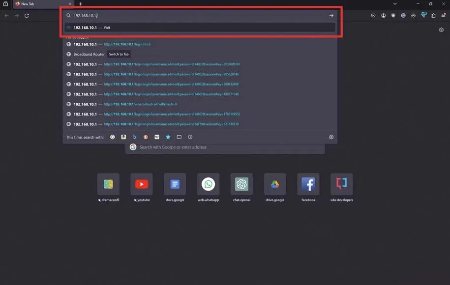 اول از همه باید مرورگر را باز کنید و سپس آیپی مودم یا روتر را تایپ کنید. این آیپی به مدل مودم شما بستگی دارد ولی معمولا چیزی مثل 192.168.1.1 است. در بخش پایینی بدنهی مودم، میتوانید آیپی آن را پیدا کنید.