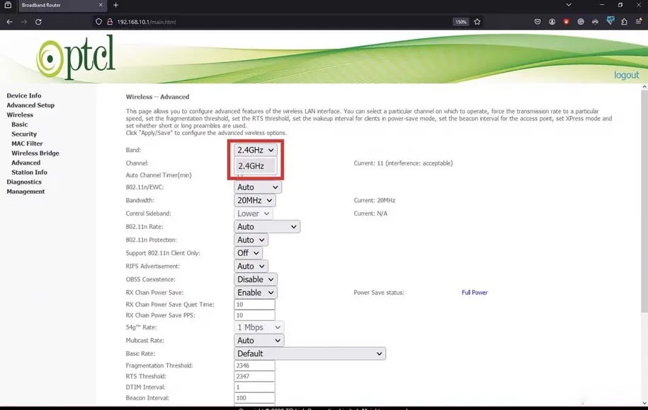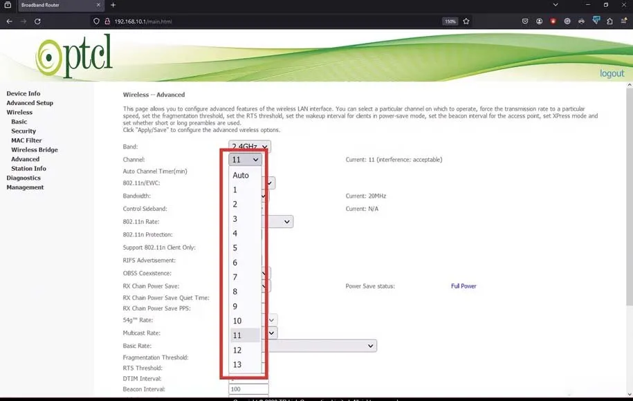 در همین قسمت، قادر به مشخص کردن کانال شبکه وایفای هم هستید که این موضوع برای باند 2.4 گیگاهرتز اهمیت زیادی دارد. معمولا توصیه میشود از بین کانالهای 1، 6 یا 11 دست به انتخاب بزنید.