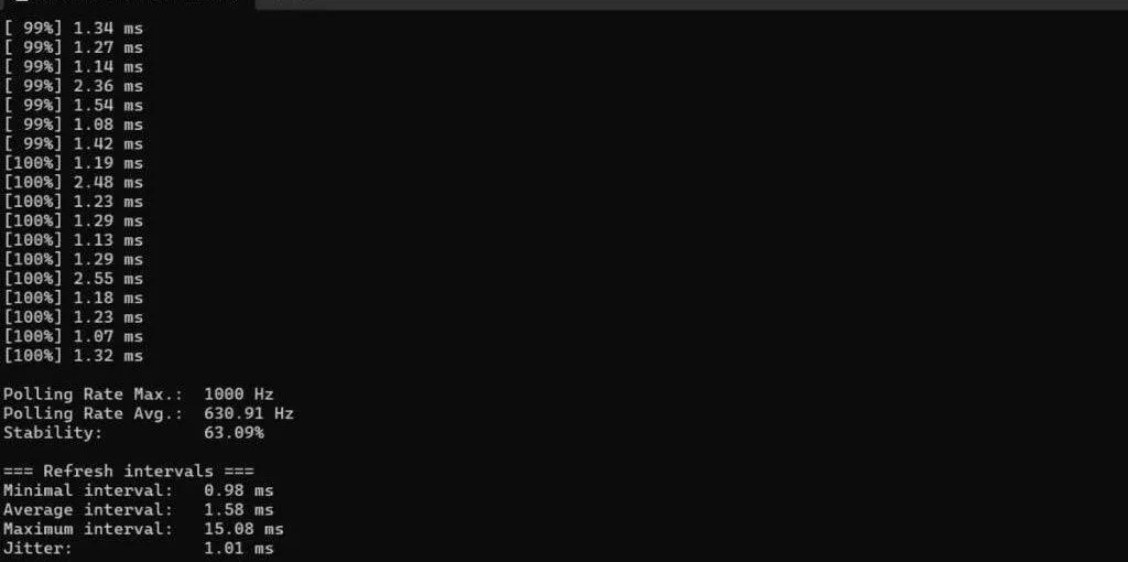 یکی از مزایای استفاده از دسته با بلوتوث راحتی آن است. البته، این کار ممکن است باتری زیادی مصرف کند یا حتی بازی شما به دلیل تمام شدن باتری ناگهان مختل شود. با این حال، سوال اصلی این است که کدام کنترلر کمترین تاخیر ورودی را برای بازی وارزون و بلک آپس 6 دارد؟ همانطور که در تصویر زیر میبینید، کنترلرهای ایکسباکس در اتصال از طریق بلوتوث روی نرخ پولینگ ۱۲۵ هرتز قفل هستند که این موضوع دلیل اصلی تأخیر ۷ میلیثانیهای در ثبت ورودیهاست که نتیجهی خوبی نیست. نرخ پولینگ به فرکانسی گفته میشود که دادههای دسته به دستگاهی که به آن متصل است، ارسال میشوند. بهبیان سادهتر، این نرخ مشخص میکند که دسته با چه سرعتی به کامپیوتر گزارش میدهد.