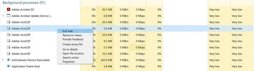 بسیاری از فرایندهای نرمافزاری حتی زمانی که پنجرهی آنها را میبندیم، در پسزمینه در حال فعالیت هستند. به همین دلیل، باز و بسته کردن آکروبات ریدر در چنین وضعیتی هیچ کمکی به حل مشکل نمیکند. از همین رو، شما باید از طریق Task Manager پنجرهی سایر برنامهها را باز کرده و سپس برنامهی آکروبات ریدر را باز کنید. برای این کار اقدامات زیر را انجام دهید: