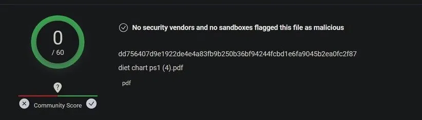 اگر ابزار سایت، فایل را آلوده شناسایی کرده، شما بهتر است فایل را پاک کنید. سپس یک کپی جدید از فایل PDF را از یک منبع سالم دانلود کنید. شما همچنین میتوانید به جای استفاده از سایت مذکور، از ابزارهای ویروسکش یا حتی Microsoft Defender بهرهبرداری کنید.