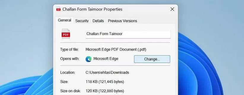 ۲. به سربرگ General رفته و روی دکمهی Change کلیک کنید.