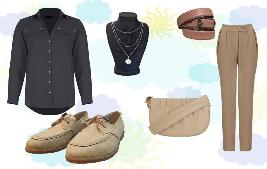 اگر میخواهید با شومیز یک استایل کژوال اسمارت و نیمهرسمی جذاب داشته باشید کافیست شومیز را با یک شلوار پارچهای شیک ست کنید. البته در این استایل بهتر است شومیزتان را داخل شلوار قرار داده و آن را با یک کمربند جذاب متناسب با رنگ آیتمهای انتخابیتان ست کنید. در این ست جذاب و کژوال اسمارت تابستانه به سراغ یک شومیز فیت کرپ از برند اسپیور رفتهایم که رنگی ذغالی دارد و در ترکیب با دیگر آیتمهای ست پالت شیک و جذابی تشکیل شده از رنگهای نسکافهای و کرم خلق میکند. یک شلوار خمرهای لینن به رنگ نسکافهای، یک جفت کفش کالج به رنگ کرم و یک کیف رو دوشی شیک چرمی به همین رنگ دیگر اجزای ست تابستانه و شیک پیشنهادی ما را تکمیل میکنند.