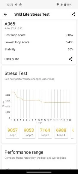 ناتینگ فون 2 هم عملکرد بدی در این زمینه نداشت. این گوشی از لحاظ قدرت پردازشی، 70٪ توانش را حفظ کرد و 60٪ توان گرافیکیاش بعد از 20 دور باقی ماند. اما میزان شارژ آن از 100 به 95٪ رسید، دمایش از 33 به 44 درجه رسید و میزان فریم هم بین 21 تا 65 متغیر بود. این نشان میدهد ناتینگ با کاهش توان پردازنده، میتواند دمای کمتری حین انجام کارهای سنگین تولید کند. اما شیائومی ترجیح داده گوشی قدرتمندش، توانش را حفظ کند، حتی اگر این حفظ توان به معنای افزایش چشمگیر دما باشد.