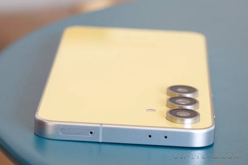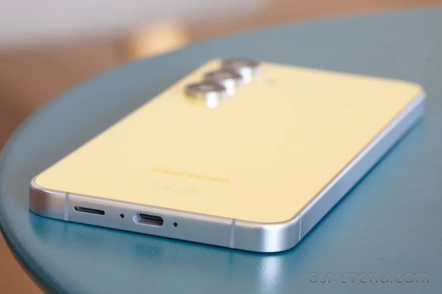 گلکسی S24 FE در فریم بالایی خود دو حفره میکروفون و درگاه سیمکارت دارد. دکمههای کنترل صدا و پاور در سمت راست دستگاه قرار دارند. فریم پایین گلکسی خروجی اسپیکر، پورت شارژ و میکروفون را روی خود جای داده است.