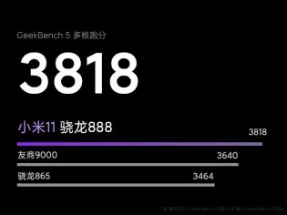 بنچمارک یاد شده، گیکبنچ است که عملکرد پردازنده را در دو بخش تک و چند هستهای بررسی میشود. در این تست، شیائومی Mi 11 و Mi 11 پرو توانستند به ترتیب در بخش تک و چند هستهای امتیاز خوب 1/135 و 3/818 را کسب کنند که کاملا مطابق با بنچمارکی است که از پردازندهی اسنپدراگون 888 منتشر شده بود. با توجه به این بنچمارک، میتوان گفت عملکرد پردازندهی جدید کوالکام بهتر از اسنپدراگون 865 و حتی کرین 9000 هواوی است.