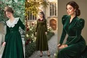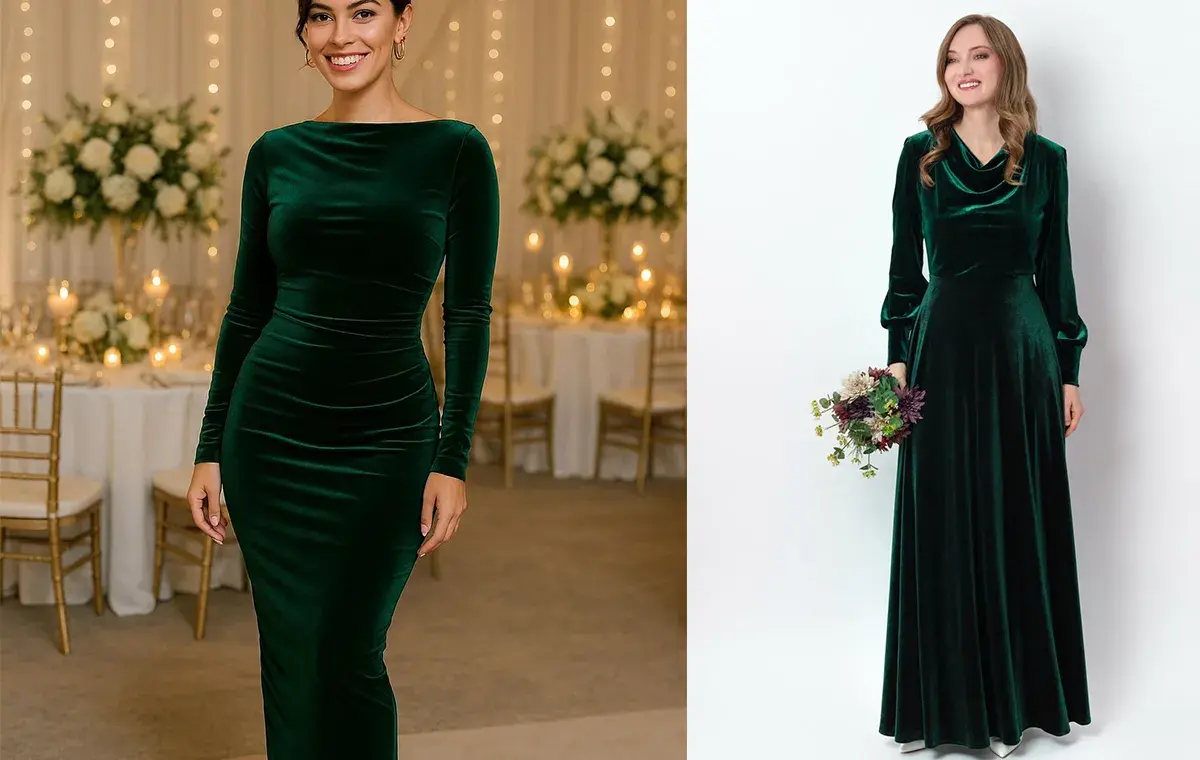 اگر راحتی و وقار برایتان در اولویت است، یک لباس شب بلند، آستینبلند و پوشیده، یک گزینهی عالی خواهد بود. مثلا یک پیراهن ماکسی به رنگی مانند قرمز تیره یا سبز یشمی، همراه با تزیینات ملایم (برای مثال کمی دانتل یا سنگدوزی ظریف در بالاتنه)، شما را باوقار و در عین حال خیرهکننده نشان میدهد. اگر جشن شما در فضای خاصی برگزار میشود، بهتر است انتخاب لباس را با تزیین سفره شب یلدا عروس ست کنید تا همهچیز در عکسها زیباتر دیده شود.