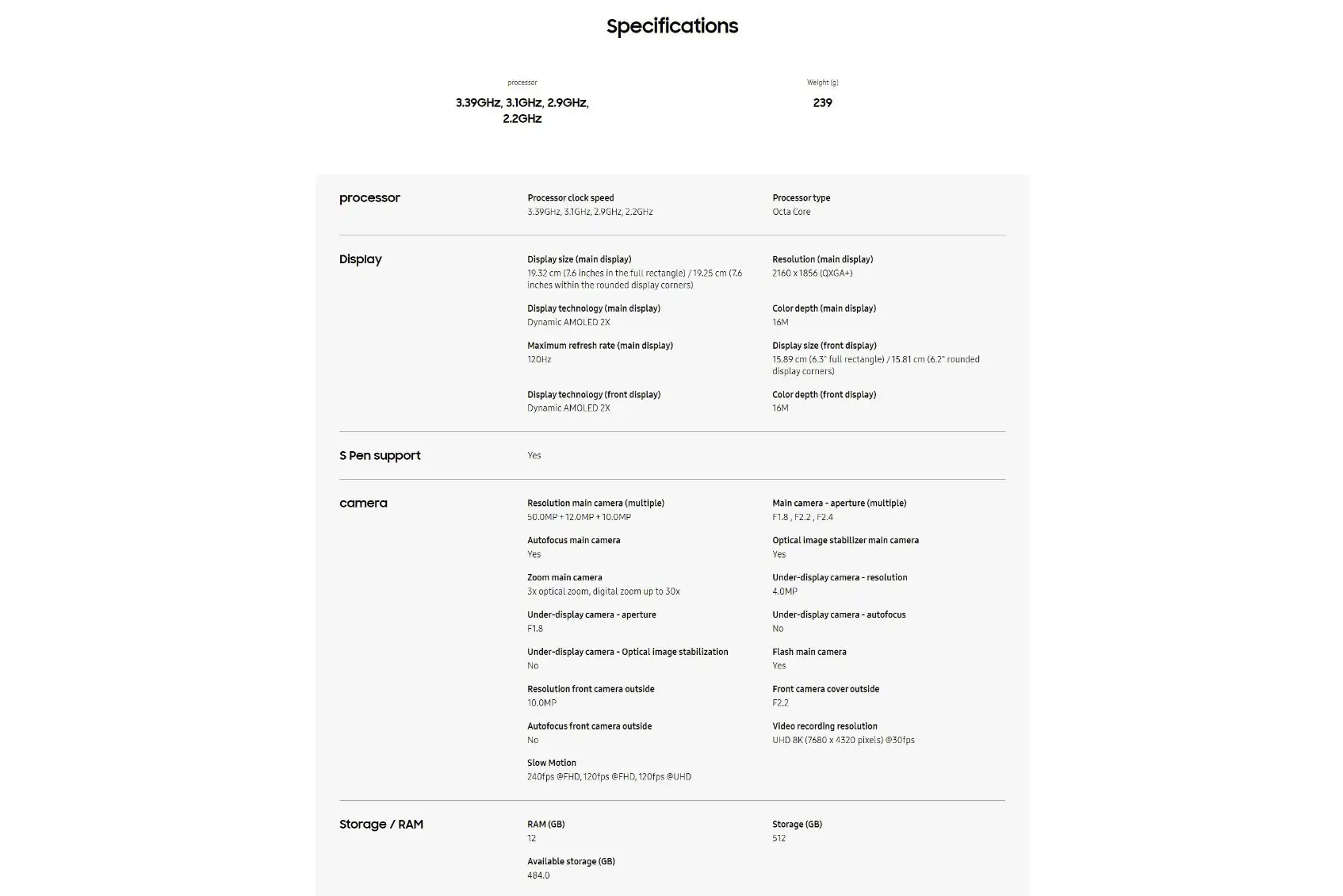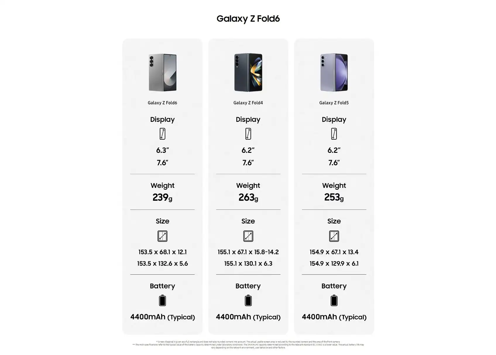 اولا، تصاویر تقریبا تایید میکنند که گلکسی زد فولد 6 یک ارتقاء تدریجی نسبت به نسل قبلی خود، یعنی زد فولد ۵ خواهد بود. به نظر میرسد تنظیمات دوربین که سامسونگ طی سه سال آن را بهروزرسانی نکرده، بدون تغییر باقی مانده است. این گوشی همچنان همان باتری ۴۴۰۰ میلیآمپر ساعتی و سرعت شارژ ۲۵ وات را حفظ میکند و حتی اندازهی نمایشگرها نیز ثابت مانده است. با این حال، تغییرات ظریفی در ابعاد گوشی وجود دارد. این گوشی کمی کوتاهتر و پهنتر (در هر دو مورد ۱ میلیمتر) از زد فولد ۵ است و مهمتر از آن، کاهش وزنی ۱۴ گرمی در آن ذکر شده است.