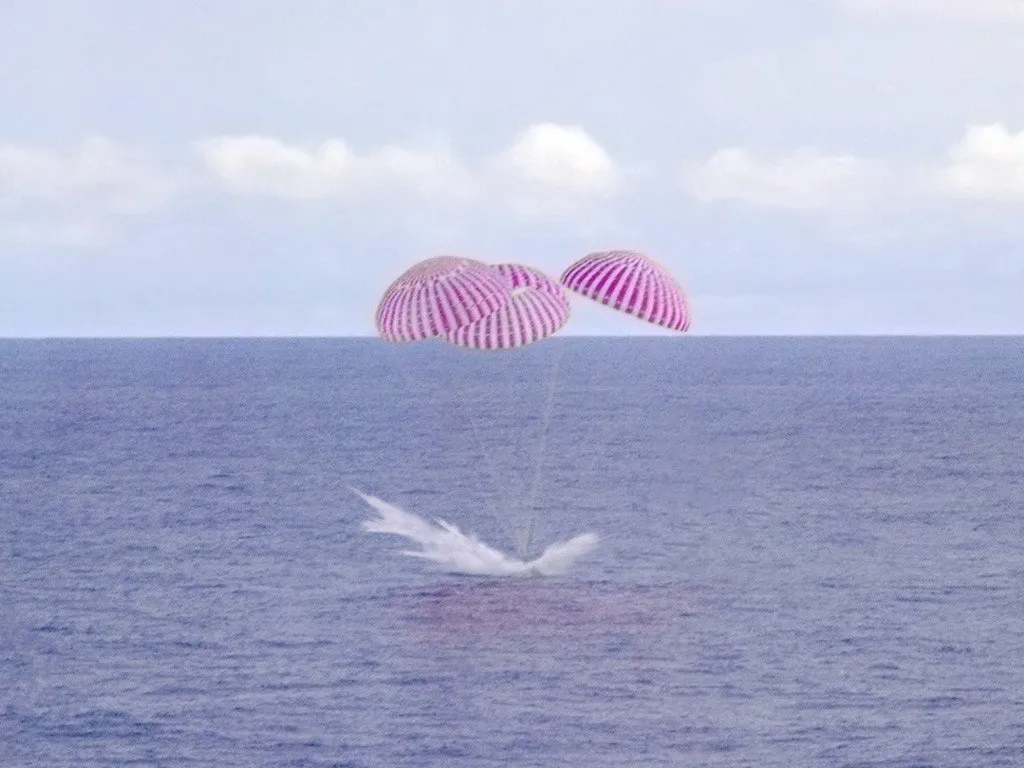 با گذشت 48 ساعت، هر کپسول بدون شاتل اولیه و به تنهایی به زمین بازمیگردد. برای این کار مانند مأموریتهای فضایی فعلی ناسا، از سیستم فرود در آب استفاده خواهد شد. برای تنظیم مسیر، 12 پیشران در لبههای کپسول تعبیه داده شدهاند و یک سپر حرارتی هم هنگام ورود مجدد به جو از کپسول محافظت خواهد کرد. هفت چتر نجات هم به فرود آرام کپسول در آب کمک خواهند کرد.